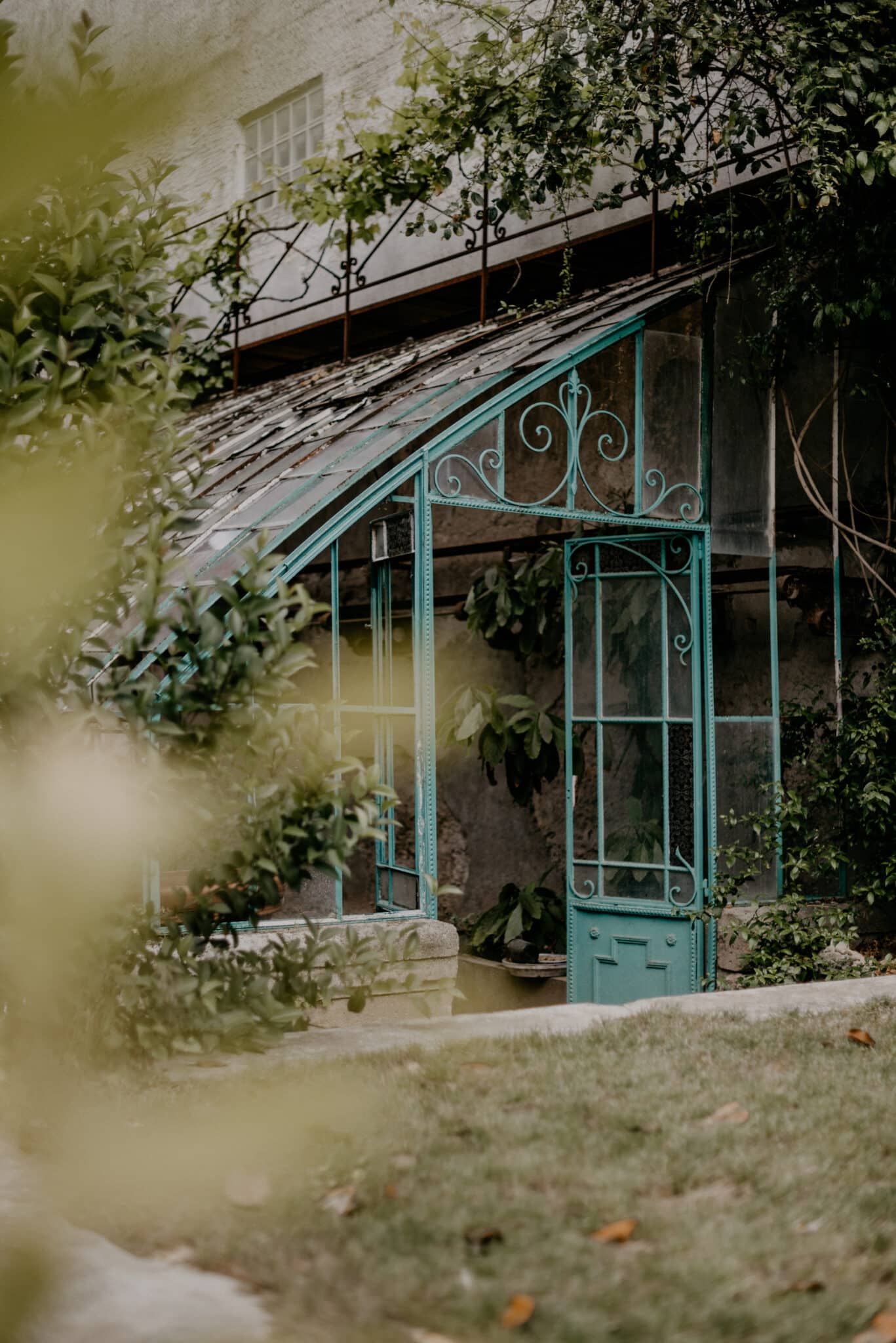 The magnificent greenhouse has maintained all its original features, with its Eiffel style structures and small balcony, now home to a grape vine.